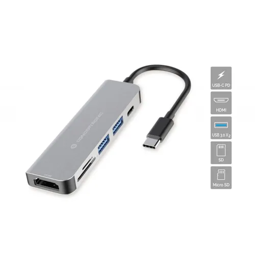 Conceptronic DONN02G Multifunktionaler 6-in-1 USB Adapter USB-A 3.0 x 2 USB-C PD