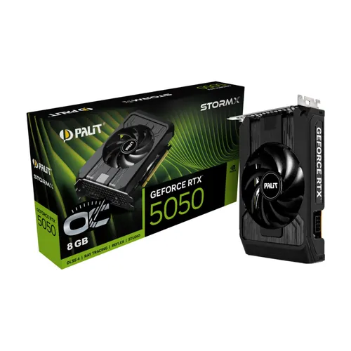 Palit GeForce RTX™ 5050 StormX vereint die volle Leistung einer Standard-Grafikkarte in einem ultrakompakten 17 cm Design. Ideal für kompakte Systeme, liefert sie kompromisslose Performance bei minimalem Platzbedarf – perfekt für Gamer, die Leistung und Mobilität wollen.GeForce RTX 50-SerieGame ChangerDie GPUs der GeForce RTX™ 50-Serie mit der Leistung von NVIDIA Blackwell bieten Gamern und Creators bahnbrechende Funktionen. Ausgestattet mit einer enormen AI-Leistung ermöglicht die RTX 50-Serie neue Erfahrungen und lebensechte Grafik wie noch nie. Vervielfache mit NVIDIA DLSS 4 die Leistung, generiere Bilder in beispielloser Geschwindigkeit und lasse deiner Kreativität mit NVIDIA Studio freien Lauf.NVIDIA Blackwell-ArchitekturDie ultimative Plattform für Gamer und KreativeRTX. It’s On.Ultimatives Raytracing und AIRTX ist die fortschrittlichste Plattform für vollständiges Raytracing und neuronale Technologien, die die Art und Weise, wie wir spielen und kreativ werden, revolutioniert. Mehr als 700 Top-Spiele und Anwendungen nutzen RTX, um realistische Grafiken und unglaublich schnelle Leistung mit modernsten AI-Funktionen wie DLSS Multiframe-Erstellung zu liefern.NVIDIA DLSS 4Überragende Geschwindigkeit. Überlegene Grafik. Durch AI unterstützt.DLSS ist eine revolutionäre Sammlung neuronaler Rendering-Technologien, die AI nutzt, um die FPS zu erhöhen, die Latenz zu reduzieren und die Bildqualität zu verbessern. Der neueste Durchbruch, DLSS 4, bringt eine neue Multi-Frame-Generation und verbesserte Ray- Reconstruction und Super Resolution, angetrieben von GeForce RTX™ 50 Series GPUs und Tensor Kernen der fünften Generation. DLSS auf GeForce RTX ist die beste Art zu spielen, unterstützt von einem NVIDIA AI-Supercomputer in der Cloud, der die Gaming-Fähigkeiten deines PCs ständig verbessert.Vollständiges Raytracing mit neuronalem RenderingBahnbrechender RealismusDie NVIDIA Blackwell-Architektur ermöglicht den bahnbrechenden Realismus von vollständigem Raytracing. Erlebe Grafik in Kinoqualität mit beispielloser Geschwindigkeit mit der GeForce RTX 50-Serie mit RT-Recheneinheiten der vierten Generation und neuronalen Rendering-Technologien, beschleunigt durch Tensor-Recheneinheiten der fünften Generation.NVIDIA Reflex 2Tritt mit Warp-Geschwindigkeit an.Die Reflex-Technologien optimieren die Grafikpipeline für bestmögliche Reaktionsgeschwindigkeit und bieten eine schnellere Zielerfassung, kürzere Reaktionszeiten sowie verbesserte Zielgenauigkeit in wettbewerbsorientierten Spielen. Reflex 2 führt Frame Warp ein, womit sich die Latenz in Bezug auf die letzte Mauseingabe des Spiels noch weiter reduziert – demnächst erhältlich!.KreativeDein kreativer AI-VorteilNVIDIA Studio ist dein kreativer Vorteil. Die GeForce RTX 50-Serie bietet transformative Leistung bei Videobearbeitung, 3D-Rendering und Grafikdesign. Erlebe RTX-Beschleunigungen in kreativen Top-Apps, erstklassige NVIDIA Studio-Treiber, die für maximale Stabilität entwickelt wurden und stetig weiterentwickelt werden sowie eine Suite exklusiver Tools, die die Leistung von RTX für AI-gestützte kreative Workflows nutzen.