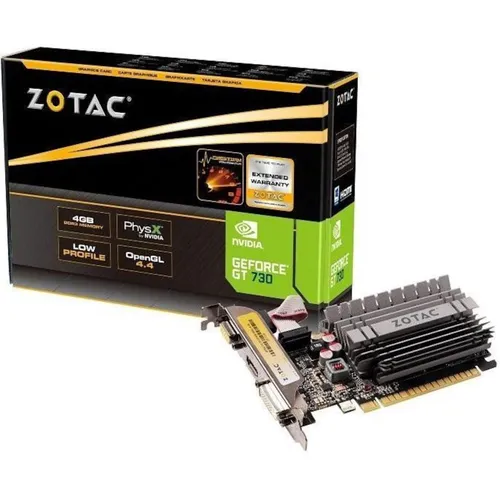 Der Grafikchip der ZOTAC GeForce GT 730 ist sehr gut für Officeanwendung, zum Surfen, Ansehen von Filmen und Spielen von älteren Titeln geeignet. Verglichen mit anderen Grafikkarten ist sie eine solide Einsteigerkarte. Zotac versieht die ZOTAC GeForce GT 730 mit 4 GB Speicher. So sind nicht nur hohe Auflösungen oder Kantenglättung ohne Probleme möglich, selbst wenn Sie selbst Hand anlegen und hochauflösende Texturmods installieren. Dank der Kühlkonstruktion gelingt es Zotac die Grafikkarte ohne zusätzliche Lüfter zu kühlen - eine passive Grafikkarte wie die ZOTAC GeForce GT 730 bietet sich somit perfekt für HTPCs oder Silent PCs an. Dank des Low Profile Formfaktors findet die ZOTAC GeForce GT 730 auch in kleinen Computergehäusen Platz.
