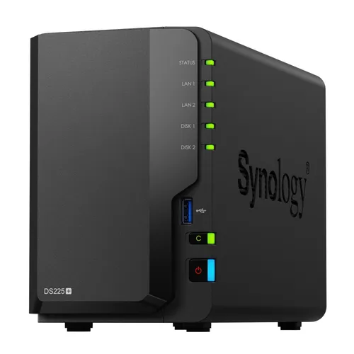 Die Synology DiskStation DS225 ist eine kompakte 2Bay-NASLösung, die zur Zentralisierung der Datenverwaltung entwickelt wurde. Sie bietet eine umfassende Suite von Tools über den Synology DiskStation Manager DSM zur Verwaltung, Freigabe und zum Schutz von Dateien und Fotos, zur Sicherung von Geräten und Daten und dient als Kern eines intelligenten Überwachungssystems.