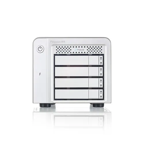 Der Pegasus M4 kombiniert die robuste PromiseRAID-Engine - bekanntfür Stabilität und hohe Leistung - mit dem hohen Thunderbolt™-Durchsatz in einem kompakten SSD-Gehäuse mit vier Einbauschächten. Der M4 eignet sich perfekt für kreative Medienprofis unterwegs.