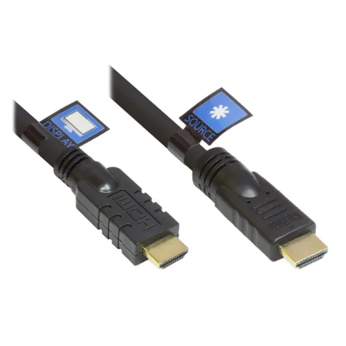HDMI® 2.0 Kabel, 4K2K / UHD 60Hz, AKTIV (Redmere Chipsatz), 24K vergoldete Stecker und Kupferkontakte, OFC, schwarz, 10m, Good Connections