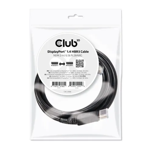 Club3D CAC-2068 DisplayPort 1.4 HBR3 8K60Hz Kabel 2.00 m schwarz