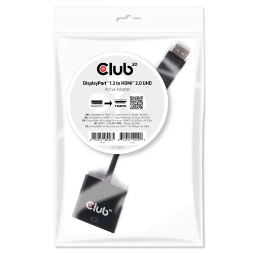 Der Club 3D CAC-2070 ist ein aktiver HDMI Signalwandler. Der DisplayPort 1.2 zu HDMI 4K 60 Hz Aktiver Adapter ist die einfachste Lösung für den Anschluss Ihres DisplayPort 1.2 Game PC oder Laptop an einen HDMI 4K UHD Fernseher, Monitor oder Projektor. Der Adapter entspricht der HDMI Spezifikation und ermöglicht einen TMDS-Durchsatz von 6 Gbps pro Kanal. Die Schnittstelle im Adapter hat drei Bahnen für HDMI Daten, Takt, HPD Signal und Leistung und bietet einen Gesamt TMDS-Durchsatz von 18 Gbps.