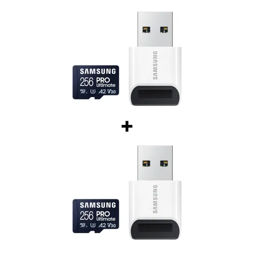 [Doppel-Pack] Samsung PRO Ultimate 256 GB microSD-Speicherkarte mit USB-Kartenleser