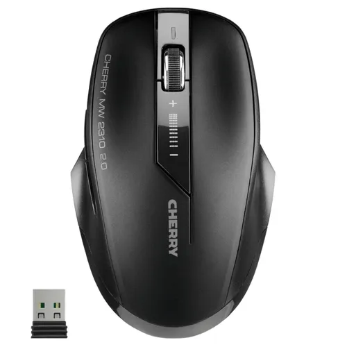Fortschrittliche Materialien, komfortable Oberflächen und eine universelle Verwendbarkeit machen die CHERRY MW 2310 2.0 zu dem was sie ist: Die CHERRY-Maus für höchste Leistung zu einem überraschend günstigen Preis.Die CHERRY MW 2310 2.0 ist eine vielseitige 6-Tasten-Funk-Maus mit 2,4 GHz-Technologie und ergonomischem Design. Ihr Nano-USB-Empfänger ist so klein, dass er auch beim Transport gefahrlos im Notebook eingesteckt bleiben kann - dadurch ist die Maus immer betriebsbereit. Die CHERRY MW 2310 2.0 arbeitet mit einem in 3 Stufen einstellbaren optischen Sensor (1000/1600/2400 DPI). Über den DPI-Schalter auf der Mausoberseite kann die bevorzugte Auflösung per Knopfdruck einfach ausgewählt werden. Eine LED gibt Auskunft über die eingestellten DPI. Durch ihr technisches Konzept ist das Nachfolgeprodukt der legendären CHERRY MW 2310 besonders energiesparend. Mit einem Satz der mitgelieferten Batterien (2 x AA) kann die Maus bis zu 3 Jahre ohne Batteriewechsel betrieben werden. Mit dem Ein-/Ausschalter auf der Unterseite kann die Maus bei Nichtgebrauch komplett ausgeschaltet werden. Fortschrittliche Materialien, komfortable Oberflächen und eine universelle Verwendbarkeit machen die CHERRY MW 2310 2.0 zu dem was sie ist: Die CHERRY-Maus für höchste Leistung zu einem überraschend günstigen Preis.