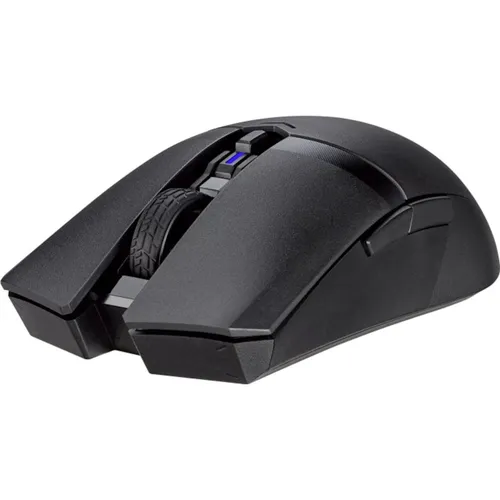 Die TUF Gaming M4 Wireless verfügt über sechs taktile und programmierbare Tasten, mit denen die Steuerung an jeden Spielstil angepasst werden kann. Die linke und die rechte Taste sind von der oberen Abdeckung getrennt, was zu einer geringeren Betätigungskraft und einem geringeren Tastenweg für schnellere und taktilere Klicks führt. Mit einem DPI-Schalter und einer Anzeige kann die Empfindlichkeit spontan eingestellt werden, während zwei strategisch platzierte Tasten auf der linken Seite und ein klickbares Scrollrad zusätzliche Steuerungsmöglichkeiten bieten.
