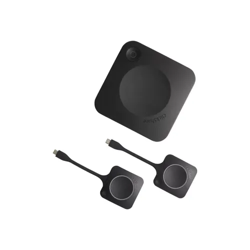 ClickShare C-10 ermöglicht interaktive kabellose Präsentationen in jedem Konferenzraum. Die Inhalte lassen sich ganz einfach freigeben: mit nur einem Klick auf den ClickShare Button (Windows oder Mac) oder in der ClickShare-App (Laptop, Mobilgerät oder Tablet). Beginnen Sie Präsentationen innerhalb von Sekunden: keine Kabel, keine Software zum Herunterladen, keine Schulung erforderlich.