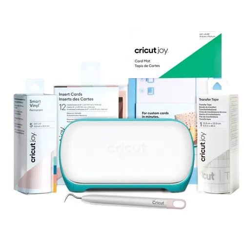 Lasse deiner Kreativität mit dem Cricut Joy Starterset freien Lauf. Mit diesem Set kannst du sofort loslegen. Erstelle Etiketten, personalisierte Karten und noch vieles mehr. Die Möglichkeiten sind grenzenlos. Beim Cricut Joy Schneideplotter handelt es sich um einen einfachen und kompakten Schneideplotter für kreative Bastler. Aufgrund seiner Präzision kann dieser Schneideplotter in viele Materialien schneiden. Die Entwürfe lassen sich von jedem Bluetooth-Geräte auf den Schneideplotter übertragen. Den Plotter mit den Maßen 13,9 x 21,4 x 10,8 cm kann man mühelos unterbringen. Auf Mitnehmen stellt kein Problem dar, denn der Joy wiegt keine 2 kg. Erstelle deinen Entwurf, lasse ihn von Joy plotten oder schreiben und fertig ist deine Kreation.