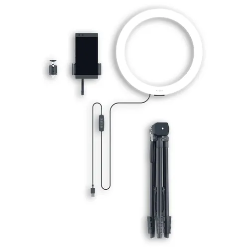 Zum Lieferumfang des Razer Ring Light gehört eine Kugelkopf-Halterung für Webcams, Kompaktkameras oder DSLRs, wenn du per PC streamen möchtest, und eine Smartphone-Halterung für Streaming auf mobilen Geräten. - STATIV