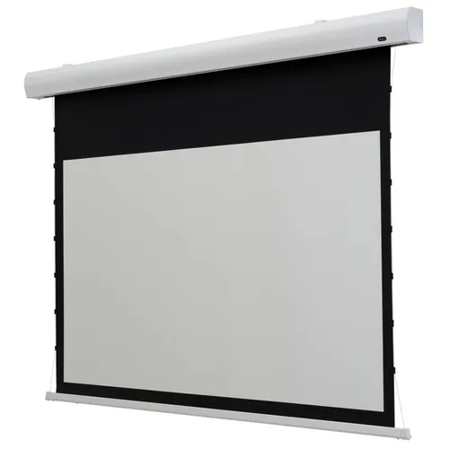 Die verbaute, formstabile Schneckenwickelwelle verhindert horizontale Streifenbildung effektiv. Zusätzlich sorgt die schwere Beschwerungsstange, neben dem seitlichen Seilspannsystem (Tension System), für eine optimale Planlage und verhindert effektiv „Eselsohren“ im Projektionsbereich. Seitlich in die Kappen der Beschwerungsstange eingearbeitete Justierschrauben ermöglichen das Tension-System nachzuspannen, sollte es nach einigen Jahren mal an Spannung verloren haben.Die celexon Leinwand HomeCinema Tension hat man für alle Cineasten und Heimkino-Liebhaber entwickelt. Dabei hat man auf funktionale Komponenten und nützliche Features ebenso Wert gelegt, wie auf ein elegantes Design, die Verwendung hochwertiger Materialien und ein hervorragendes Preis/Leistungsverhältnis.