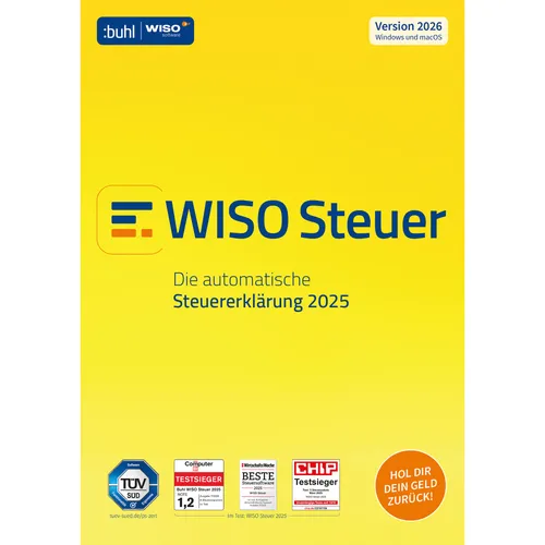 NUR HIER: STEUER AUTOMATISCH AUSGEFÜLLTIntelligente Datenübernahme aus der Vorjahresversion, automatisch vorausgefüllte Erklärung mit Daten vom Finanzamt (VaSt) und aus dem Bankkonto, papierlose Abgabe auch ohne eigenes ELSTER-Zertifikat, KI-Chatbot SteuerGPT u.v.m.Über 150 Videos mit Tipps, umfangreiche Steuerspar-Hilfe, exakte Berechnung der Erstattung, Steuerbescheid-Prüfer, Planspielmodus, Antrag auf Lohnsteuer-Ermäßigung u.v.m.Abgabe der Steuererklärung mit ELSTER oder als Ausdruck, automatische Bescheidprüfung mit Einspruchsvorschlag, Vorlagen und Musterschreiben, Schnell-Rechner für Netto-Gehalt, Auswahl der günstigsten Steuerklasse, Erbschaft, Riester u.v.m.• Erledigt die Einkommensteuer-Erklärung 2025 mit allen Einkunftsarten und Formularen• Abgabe der Steuererklärung als amtlich anerkannter Ausdruck oder per Internet (ELSTER)• Für Selbstständige: Einnahmen-Überschuss-Rechnung (EÜR), Umsatzsteuer-Voranmeldung, Umsatz- und Gewerbesteuer-Erklärung, Lohnsteuer-Anmeldung, Fahrtenbuch• Feststellungserklärung 2025 für Erbengemeinschaften und BGB-Gesellschaften• Steuererklärung mit KI-Unterstützung durch interaktiven Chatbot• Hunderte Steuertipps• Über 150 Videos mit Tipps rund um die Steuererklärung• Sofortige Anzeige der Erstattung/Nachzahlung nach jeder Eingabe• Automatischer Vergleich des amtlichen Steuerbescheids mit der Programmberechnung• Musterschreiben für die Korrespondenz mit dem Finanzamt• Zahlreiche Rechner für jede Gelegenheit (Gehalt, Abfindung, Erbschaft, Kfz-Steuer, Riester uvm.)• Praxisnahes Bedienbuch als PDF• Inklusive Steuer-Ratgeber als PDF (ca. 460 Seiten), gedruckte Fassung kostenlos bestellbar (Link in der Box)• Inklusive kostenfreier Updates für das Steuerjahr 2025• Kostenloser Telefonsupport• Kostenlose Apps für Smartphone und Tablet (Android und iPhone/iPad)