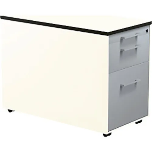 Schubladencontainer auf Rollen, HxT 573 x 800 mm, 1 Materialschub, 1 Hängeregistratur, reinweiß / alusilber / weiß. Anlieferung = montiert. Höhe = 573 mm. Breite = 417 mm. Tiefe = 800 mm. Utensilienschub = ja. Anzahl Hängeregistraturschübe = 1 Stück. Auszug Hängeregistratur = Vollauszug. Innenmaße Hängeregistratur HxBxT = 280x330x685 mm. Anzahl Materialschübe = 1 Stück. Auszug Materialschub = 75%. Innenmaße Materialschub HxBxT = 130x330x685 mm. Produkttyp = Rollcontainer. Material = Stahl, einbrennlackiert. Korpusfarbe = reinweiß RAL 9010. Korpusstärke = 0.75 mm. Schubladenmaterial = Stahlblech. Schubladenfarbe = weißaluminium RAL 9006. Schubladentraglast = 25 kg. Schubladen-Anzahl/Größe = 1 Stk HxBxT 130x330x685 mm, 1 Stk HxBxT 280x330x685 mm. Schubladenführung = mit kugelgelagerten Teleskopauszügen. Eigenschaft = Auszugsperre, verschließbar. Radausstattung = 4 Rollen, davon 2 feststellbar. Raddurchmesser = 35 mm. Plattenstärke = 13 mm. Klassisch oder farbenfroh. Top-Qualität! Die hochwertigen Schubladenführungen sind serienmäßig mit Selbsteinzug und Dämpfung ausgestattet. Ebenfalls serienmäßig: Die geräuschmindernde Anti-Rutsch-Bodenfläche in der Auszugsfächerschale mit Utensilienfach. Stabiler, verschweißter Stahlkorpus mit hochwertiger Einbrennlackierung. Auf Rollen. Schubladen mit geschlossenem Boden. Doppelauszugsperre. Zentralverriegelung per Drehzylinderschloss mit Wechselkern inkl. 2 Schlüssel. Abdeckplatte HPL-Vollkern 13 mm, Kante schwarz. 1 Materialschub, 1 Hängeregistratur mit Vollauszug, 1 Utensilienschub mit Teilauszug. Montierte Anlieferung. Gleichschließung auf Anfrage.