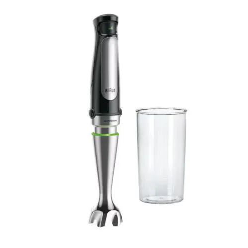 Revolutionäre ActiveBlade Technologie: Der Stabmixerschaft überträgt die Auf- und Abwärtsbewegung beim Pürieren auf die Messerklinge. Für 40 % weniger Kraftaufwand* beim Pürieren härtester Zutaten dank 250 % mehr aktiver Schneidefläche und für doppeltso feine Ergebnisse. (*Im Vergleich zu Braun Stabmixern ohne ActiveBlade Technologie)