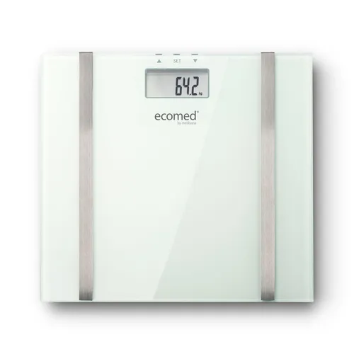 Mit der Ecomed Körperanalysewaage BS-70E erreichen Sie schneller Ihr Ziel. Dank innovativer Technologie und hochwertiger Edelstahlelektroden haben Sie immer die Kontrolle auf dem Weg zum Wunschgewicht. Die Körperanalysewaage bestimmt das Gewicht präzise bis zu 150 Kilogramm. Darüber hinaus errechnet sie den Anteil des Körperfetts und des Körperwassers sowie die Muskelmasse. Die Waage schaltet sich nach zehn Sekunden automatisch ab. Dadurch spart das Gerät kostbare Energie.