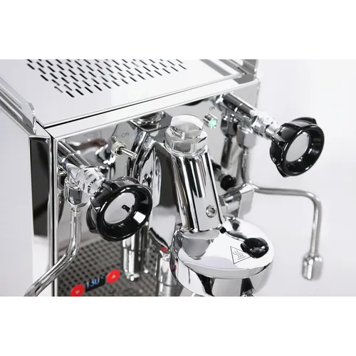 Die belibte Rubino in einer PID Ausführung.Neben der Gradgenauen Verstellung, bietet die Rubino Plus auch einige Optische Highlights gegenüber dem Schwestermodel.Isolierter 1,8ltr EdelstahlkesselDampf und Wasserohr No Burn EdelstahlDoppelmanometer3ltr. WassertankExtrem leise Vibrationspumpe mit PulsorNeue ergonomische DrehgriffeNeue längere AbtropfschaleShot TimerGradgenauer PIDEco Modus (Ausschaltbar)Standby Modus (Ausschaltbar)Neue fein gefertigte Rehling. Hier in der Version ohne den Diamanten auf der Seite