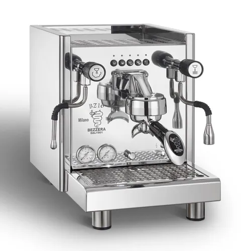 Das neue Modell Bezzera BZ16 arbeitet mit einer Pumpe und Magnetventilen an der Brühgruppe. Erhältlich ist die BZ16 in 2 Versionen: einmal als “S” Version mit Wassertank und Vibrationspumpe, oder als “R” Version mit Rotationspumpe; eine flexible Installation ist möglich. Dank des 2-Liter Boilers mit Wärmetauscher und elektrisch beheizter Brühgruppe kann man sehr schnell Cappuccinos, Espresso and Tee sehr schnell aufs Tablett zaubern. Mit dem neuen elektrischen und hydraulischen System wird eine optimale thermische Stabilität erreicht, die den professionellen Systemen in nichts nachsteht.