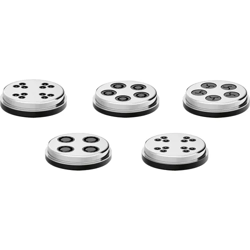 Fünf unterschiedlichen Pasta-Scheiben für den Fleischwolf zur Herstellung vieler Nudel-Variationen