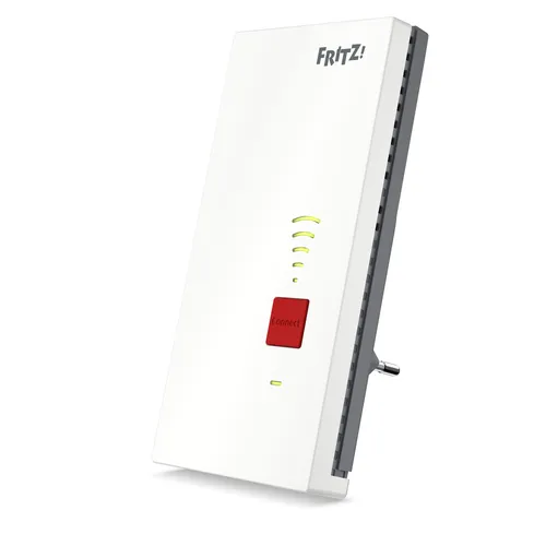 The AVM FRITZ!WLAN Mesh Repeater 2400 is a powerful WLAN repeater that extends your existing wireless network and ensures a reliable connection throughout your home. As part of the FRITZ! Mesh network, the repeater seamlessly integrates into your existing network. With Wi-Fi 5 (802.11ac), the repeater achieves speeds of up to 2400 Mbps on the 2.4 GHz and 5.0 GHz frequency bands. This allows you to easily browse the internet, stream HD videos, and play online games. The FRITZ!WLAN Mesh Repeater 2400 also features a GB-LAN port to connect a wired device such as a smart TV or gaming console. With its easy setup and compact design, the AVM FRITZ!WLAN Mesh Repeater 2400 is the ideal solution to extend the range of your wireless network and ensure fast and stable connectivity throughout your home.The Repeater 2400 is quickly and intelligently integrated into the home network. It features two powerful radio units for the 5 GHz and 2.4 GHz bands, so you don't have to make any compromises when expanding your home network. The 2400 supports uncomplicated, automatic registration using the Wi-Fi WPS standard. With its Gigabit LAN port, the repeater can integrate network-enabled devices that don't have wireless functionality into the home network. The Repeater 2400 does this by using radio signals to bridge the distance to the router, something that used to require laying extra cables.