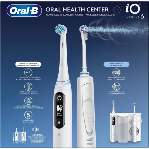 Oral-B Center OxyJet Reinigungssystem - Munddusche + Oral-B iO6 Elektronische Zahnbürste Weiß