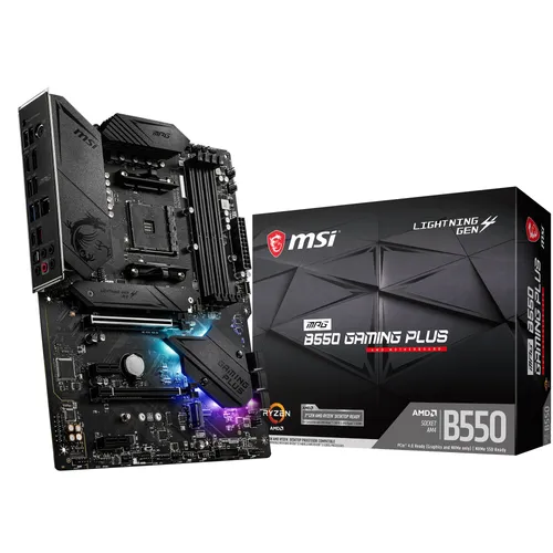 Beim Kauf eines Mainboards sollten Sie vor allem beachten dass es in Ihr PC-Gehäuse passt. Das MSI MPG B550 GAMING PLUS entspricht dem ATX-Formfaktor. Der AMD B550 Chipsatz ist das Herzstück des Mainboards. Auf dem MSI MPG B550 GAMING PLUS können Sie einen Prozessor intallieren der mit dem Sockel AM4 kompatibel ist.